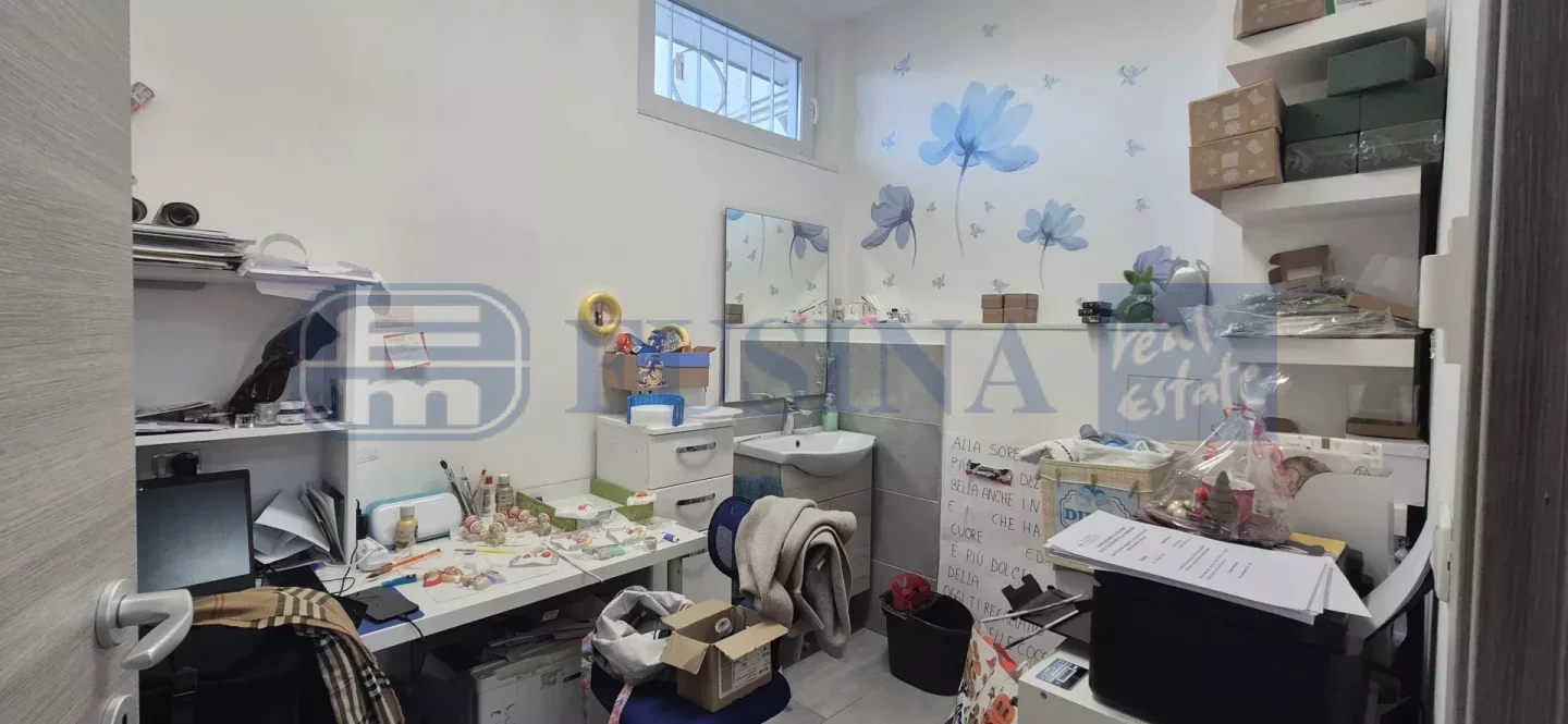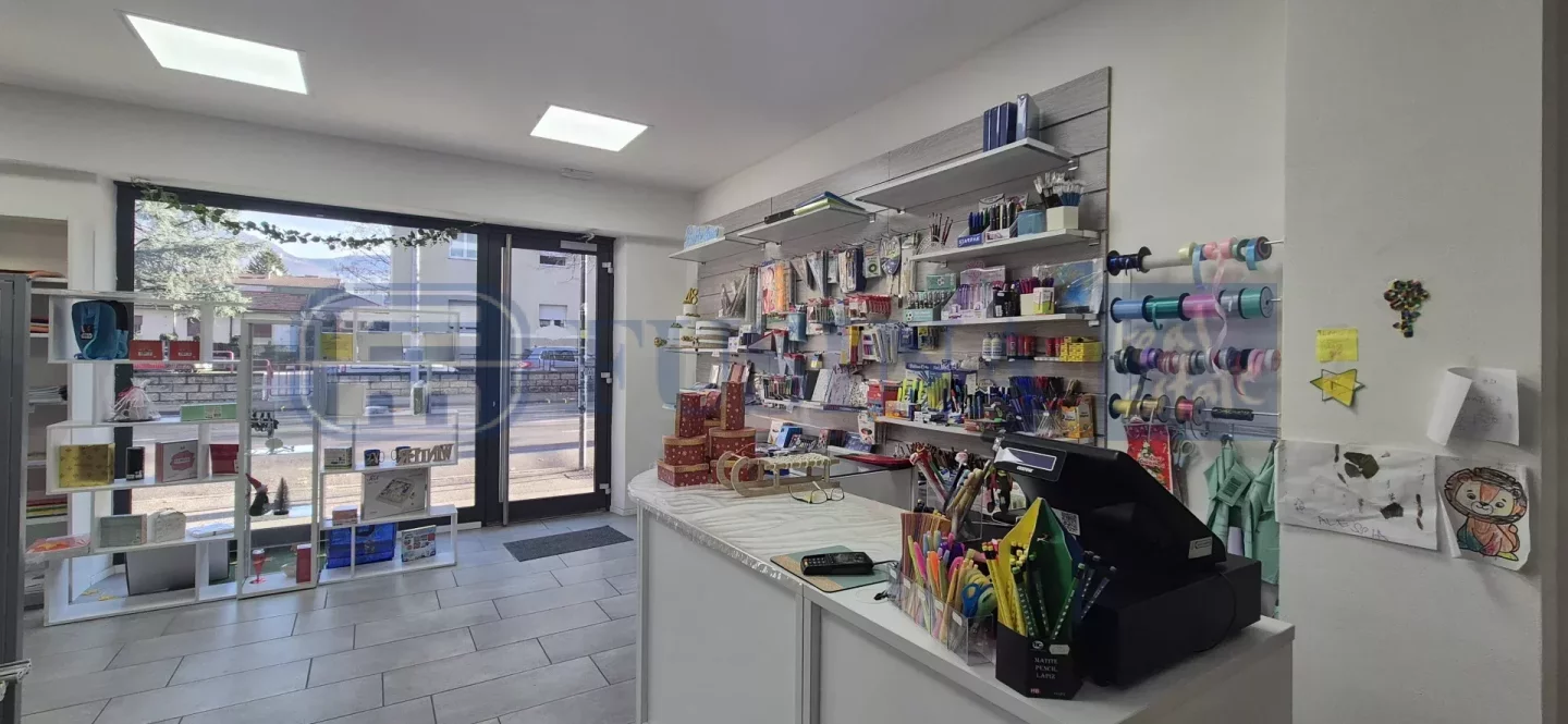 Die Immobilie, die 2023 komplett renoviert wurde, besteht aus einem Hauptverkaufsraum, einem Hinterzimmer, einem Badezimmer und einem Serviceraum, der auch über den Innenhof der Wohnanlage zugänglich ist. Im Untergeschoss befindet sich ein Lager.