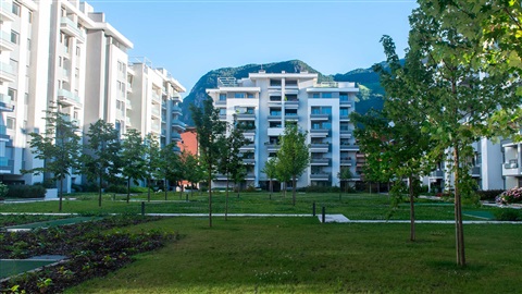 Le ampie vetrate presenti in ogni appartamento valorizzano la natura circostante e, grazie ai materiali impiegati, garantiscono un qualità elevata e uno standard Casa Clima A.