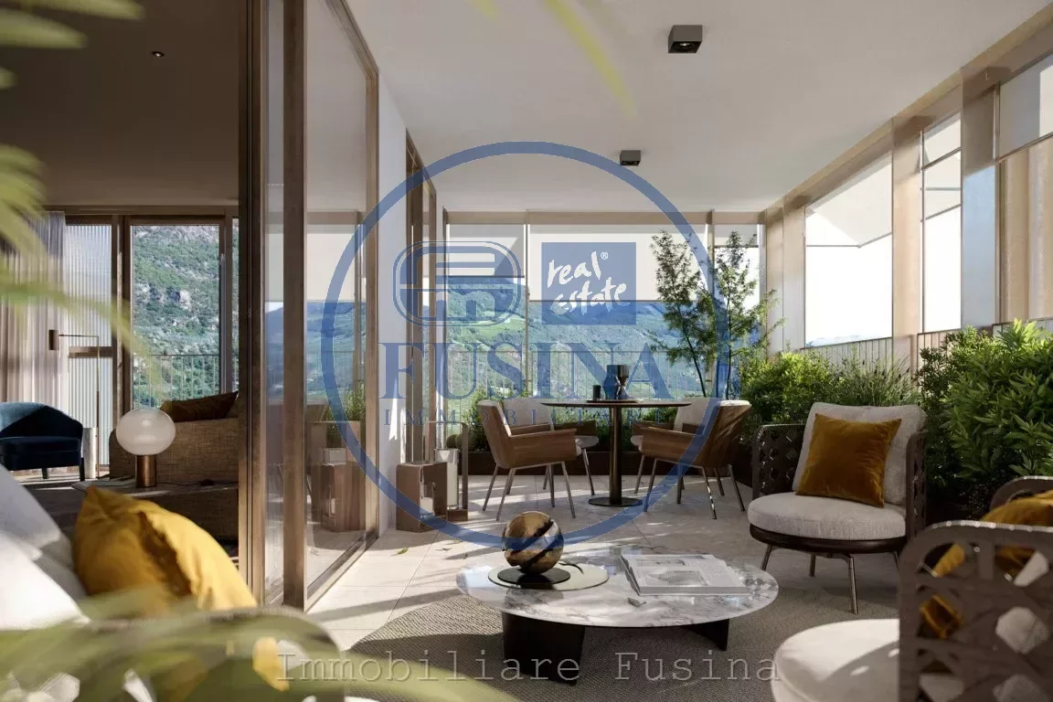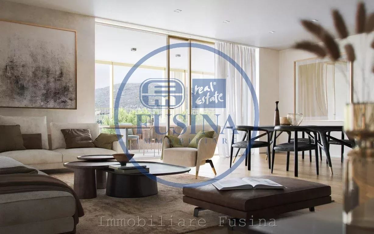 L’ingresso accoglie i residenti con uno spazio luminoso e ben organizzato, che conduce direttamente alle varie aree dell’appartamento. Un ampio e confortevole soggiorno, arredato con mobili moderni e di alta qualità, ideale per rilassarsi e ricevere ospiti. Grandi finestre lasciano entrare abbondante luce naturale, creando un ambiente luminoso e accogliente. Una cucina moderna e completamente attrezzata con elettrodomestici di ultima generazione, pensili e spazi di lavoro funzionali. La cucina è perfettamente integrata con la zona giorno, favorendo un’atmosfera conviviale. Due camere da letto ben arredate, entrambe dotate di armadi spaziosi e letti confortevoli. La camera principale offre un ambiente rilassante con tonalità neutre e arredi eleganti. Un bagno moderno, dotato di finiture di alta qualità, sanitari sospesi, una spaziosa doccia e ampi specchi che aumentano la sensazione di spazio. Un ampio terrazzo, accessibile dal soggiorno, che offre uno spazio all’aperto privato e tranquillo. Ideale per cene all’aperto, momenti di relax o per coltivare piante e fiori. Il terrazzo gode di una splendida vista sul verde circostante